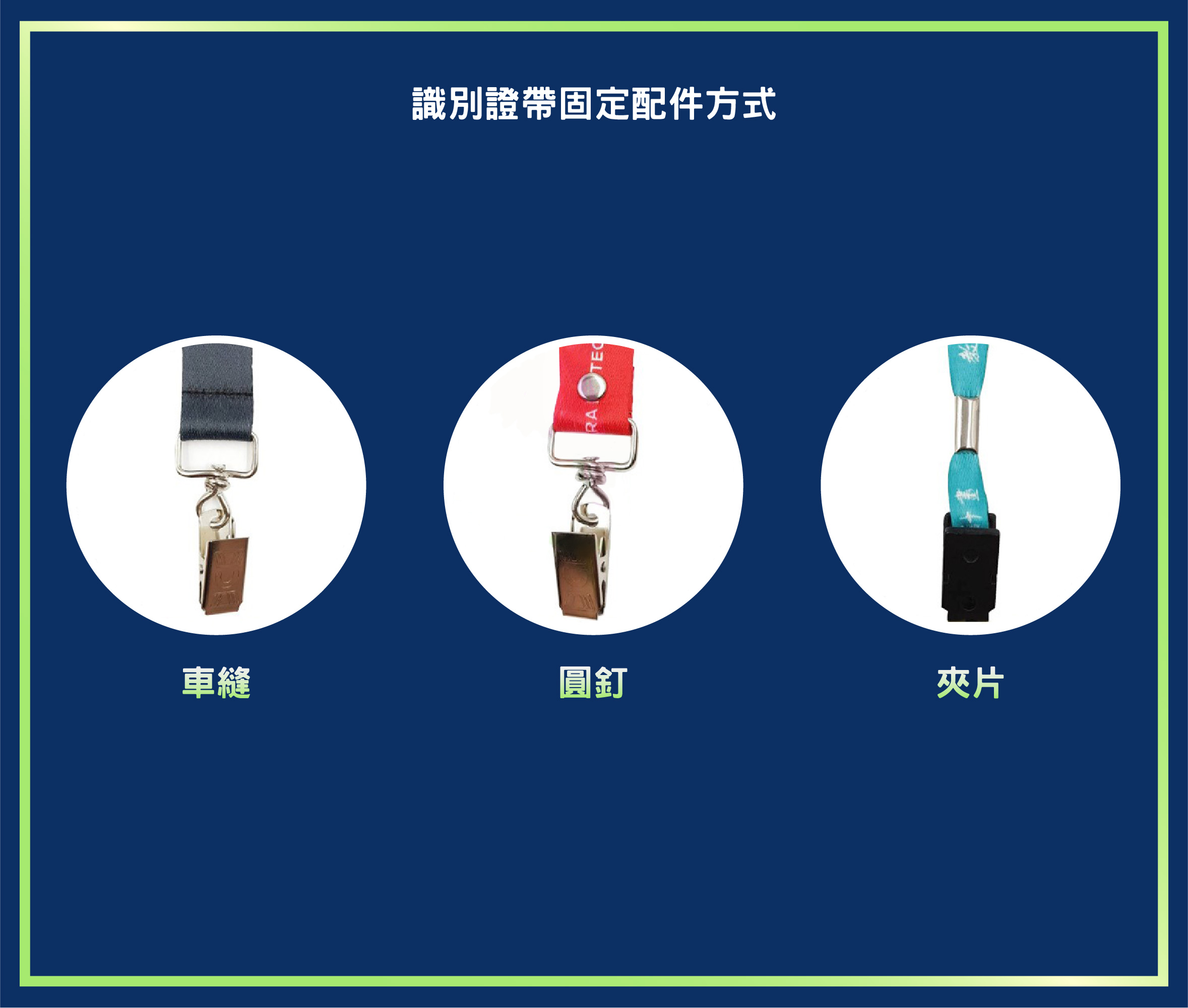 素色識別證帶 , 客製化證件帶 , 印刷識別證帶 , 識別證套 , 易拉扣 , 走馬帶 , 針織帶 , 高速帶 , 高速帶網版印刷 , 展覽識別證帶 , 公家機關識別證帶 , 熱轉印刷 , 演唱會 一次性手腕帶 , 識別證帶搭配 易拉扣 , 漸層印刷識別證帶 , gogoro 頸掛繩 , 手機繩 USB繩扣 , PVC識別證套 , PU仿皮識別證套 , 彩條PVC識別證套 , 識別證保護殼 , 卡片套 , 高質感識別證套 , 鋁合金識別證套 , 可穿織帶易拉扣 , 可勾式易拉扣 , 印刷易拉扣 , 緹花識別證帶 , 更多客製化印刷/金屬